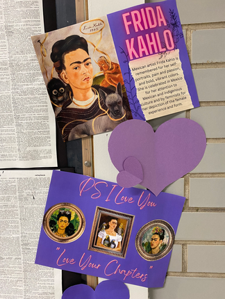 The art department had a display of Frida Kahlo, in which they hung autobiographical infographics about her experiences and artwork. They focused on her contribution to women and the Mexican community.
